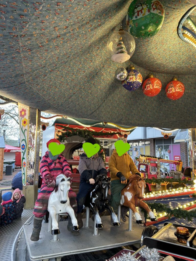 Basteln Pinguin-Liebespaare, fahren mit dem Karussel und reiten auf Holzpferchen.