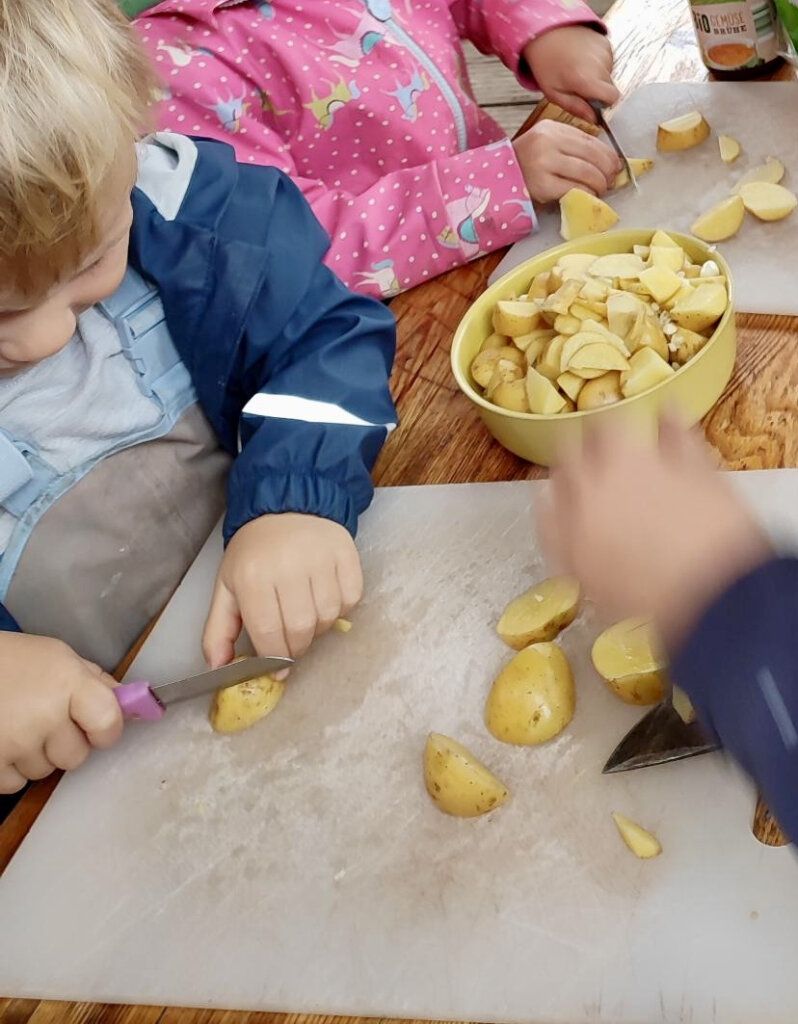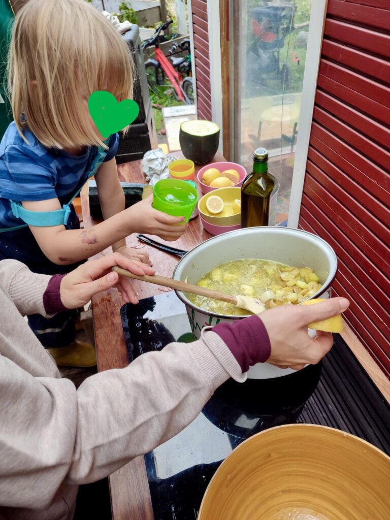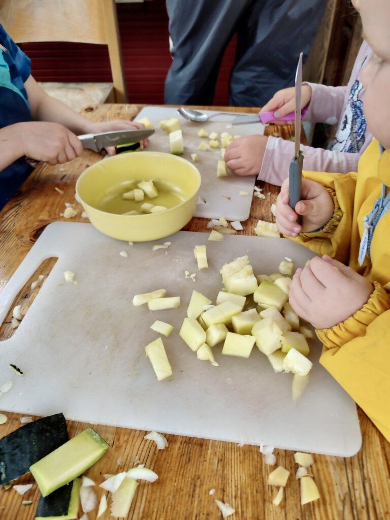Das Gemüse am Ende zu einer leckeren Zucchinisuppe zu verarbeiten ist ganzheitliche und naturverbundene Bildung. Damit legen wir die Grundsteine für lebensbejahende und selbstwirksame Persönlichkeiten. Waldpädagogik macht´s möglich 🙂