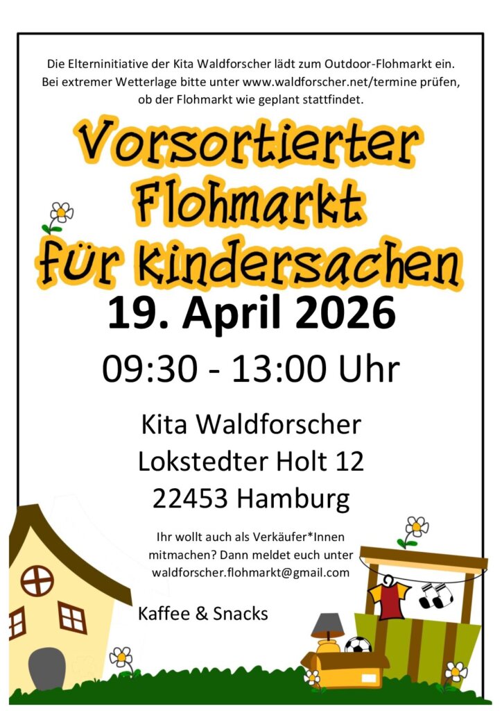 Die Elterninitiative der Waldforscher Waldkita lädt wieder zum Flohmarkt in unserem wunderschönen Waldkindergarten ein!
